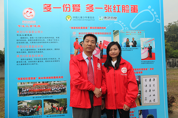 2011年12月27日,“康芝紅臉蛋基金”愛心家訪團(tuán)前往廣東普寧市洪陽鎮(zhèn),此次探訪行動(dòng)受到了社會(huì)各界的關(guān)注和支持。由奧運(yùn)跳水冠軍勞麗詩,汕頭市關(guān)工委主任張第高,普寧市政協(xié)副主席黃增權(quán),康芝藥業(yè)董事長洪江游,媒體記者,康芝藥業(yè)員工和志愿者組成的愛心家訪團(tuán)探訪了金鋒小學(xué)以及當(dāng)?shù)氐呢毨Ъ彝ィo孩子們送上關(guān)懷和禮物。