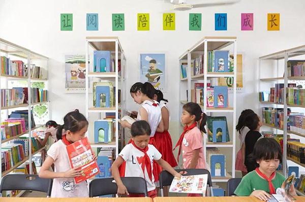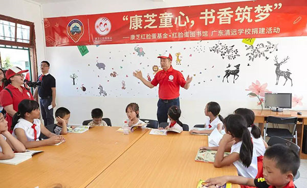 據統計,30%的城市兒童擁有88.9%的兒童讀物,70%的農村兒童只擁有11.1%的兒童讀物,圖書資源分配嚴重不均。康芝紅臉蛋基金于2016年發起“紅臉蛋圖書館”項目,先后走進廣西、江西、河南、云南、河北、新疆、山東等地,已累計幫助十多所山區小學設立“紅臉蛋圖書館”,改善孩子們的課外閱讀生活。