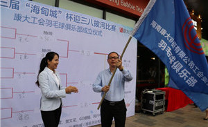 此次拔河比賽還穿插舉辦了康大工會羽毛球俱樂部成立儀式。儀式上,由海南康大投資有限公司副總經理、工會主席梁君先生為俱樂部第一屆會長林佳女士,第一屆副會長王春穎女士,女隊教練王虹蓉女士,男隊教練周義超先生頒發了聘任證書,并進行授旗。