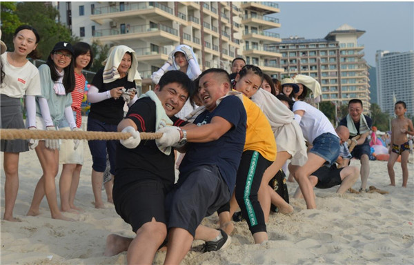 最后,工會還組織了沙灘拔河比賽。參賽隊員們個個摩拳擦掌,鉚足了勁兒,只等裁判員哨聲一響便紛紛使出洪荒之力,齊心協力往后拉,為“拔得頭籌”而拼盡全力。周圍的觀眾也毫不示弱,變身啦啦隊員,為自己的團隊加油助威、齊聲呼喊。一時間,歡呼聲、吶喊聲、加油聲此起彼伏,將比賽逐漸推向了白熱化。拔河比賽充分展現康芝人上下齊心協力、堅持不懈、敢拼敢為的良好精神風貌,進一步增強了企業凝聚力。