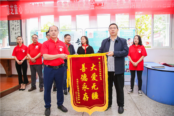 為鼓勵孩子們多讀書、讀好書,龍殿康先生向花水灣小學校長何平贈送了“愛心共建學校”牌匾。接著,花水灣鎮(zhèn)學校校長幸貴明代表學校給康芝藥業(yè)贈送了“大愛無疆 善德永存”的錦旗。