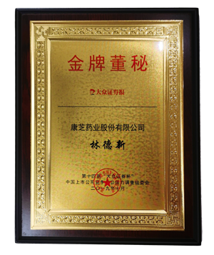 2019年10月18日,由大眾證券報主辦的第十四屆中國上市公司競爭力公信力調(diào)查評選頒獎高峰論壇在成都舉行,101家上市公司和11家上市公司掌門人在評選中獲得了投資者的認可。康芝藥業(yè)憑借良好的創(chuàng)新管理及領先的科研技術(shù)水平榮膺“最佳創(chuàng)新上市公司”獎項,康芝藥業(yè)副總裁、董秘林德新先生榮獲“金牌董秘”榮譽稱號。