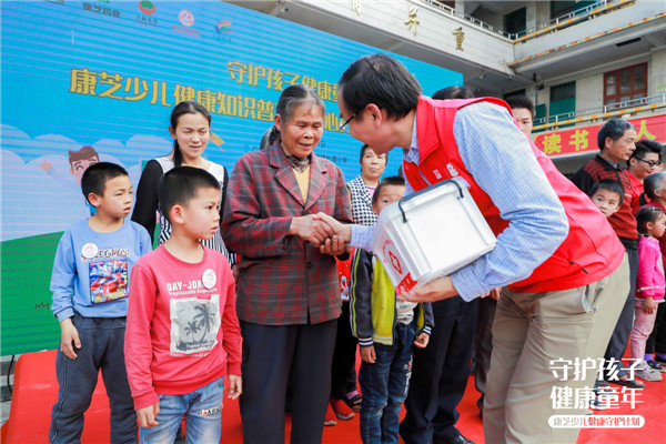 2019年,康芝藥業(yè)積極響應(yīng)國家脫貧攻堅(jiān)及健康中國的號召,聯(lián)合大翔藥業(yè)等知名藥企,發(fā)揮藥企本身能量,通過康芝紅臉蛋基金為廣大少年兒童和家長普及兒童健康知識,開授“少兒健康常識和急救知識公益課堂”,并為孩子們和家庭配備一個少兒健康愛心藥箱,為孩子的健康成長保駕護(hù)航。