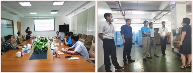 隨后,一行人參觀了中山愛護洗衣液生產(chǎn)車間、免洗手消毒凝膠生產(chǎn)車間及口罩生產(chǎn)車間等。調(diào)研查看了公司產(chǎn)品,特別是防疫產(chǎn)品的生產(chǎn)、產(chǎn)能和庫存等情況。