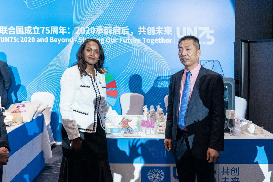 2020年10月30日,由聯合國駐華系統主辦的聯合國成立75周年暨2020年聯合國日慶?;顒釉诒本┡e行??抵ニ帢I董事長洪江游、副總裁洪麗萍等一行人受邀出席。