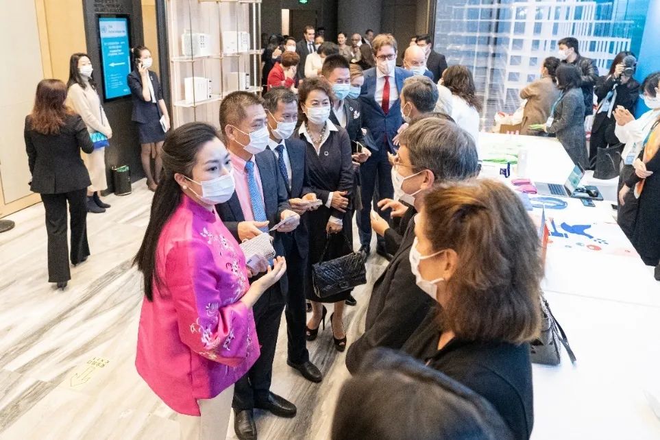 聯合國駐華機構代表佩戴康芝藥業UN75周年定制口罩,列隊歡迎各位來賓