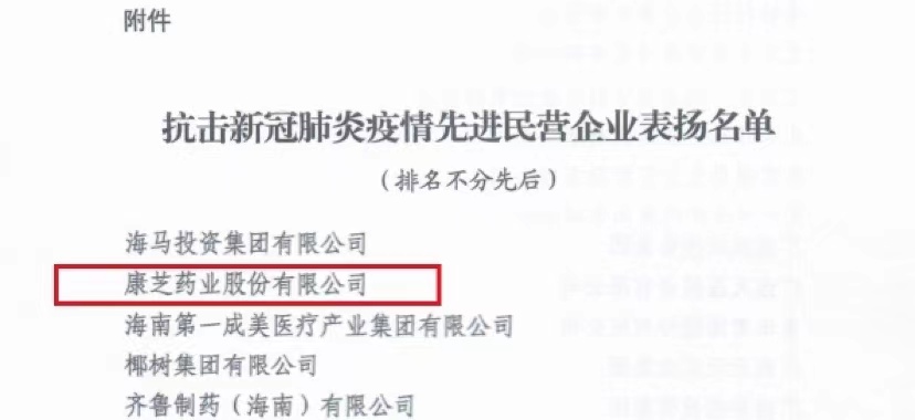 本次獲評(píng)“抗擊新冠肺炎疫情先進(jìn)民營(yíng)企業(yè)”,是對(duì)康芝藥業(yè)企業(yè)社會(huì)責(zé)任實(shí)踐的高度認(rèn)可。未來(lái),康芝藥業(yè)將始終堅(jiān)持以習(xí)近平新時(shí)代中國(guó)特色社會(huì)主義思想為指導(dǎo),繼續(xù)發(fā)揮上市藥企的優(yōu)勢(shì),積極配合祖國(guó)打贏這場(chǎng)疫情防控攻堅(jiān)戰(zhàn)!
