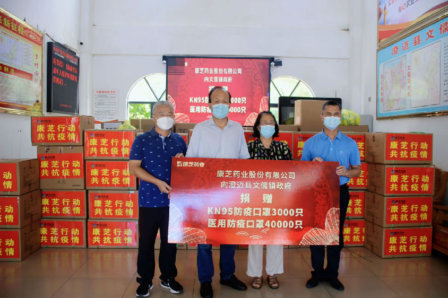 據了解,文儒鎮位于澄邁、定安、屯昌三縣交界處,交通便捷、人員物資流動頻繁,防疫壓力較大,防疫物資需求迫在眉睫。在海南省政府的支持下,康芝藥業順利辦理了《海南省重點物資運輸車輛通行證》,確保了愛心防疫物資可以及時運輸。8月13日,康芝藥業海南基地總經理高洪常帶隊,將40000只醫用防疫口罩、3000只KN95防疫口罩等康芝抗疫愛心捐贈物資順利送抵澄邁縣文儒鎮,由文儒鎮政府統一調配使用。