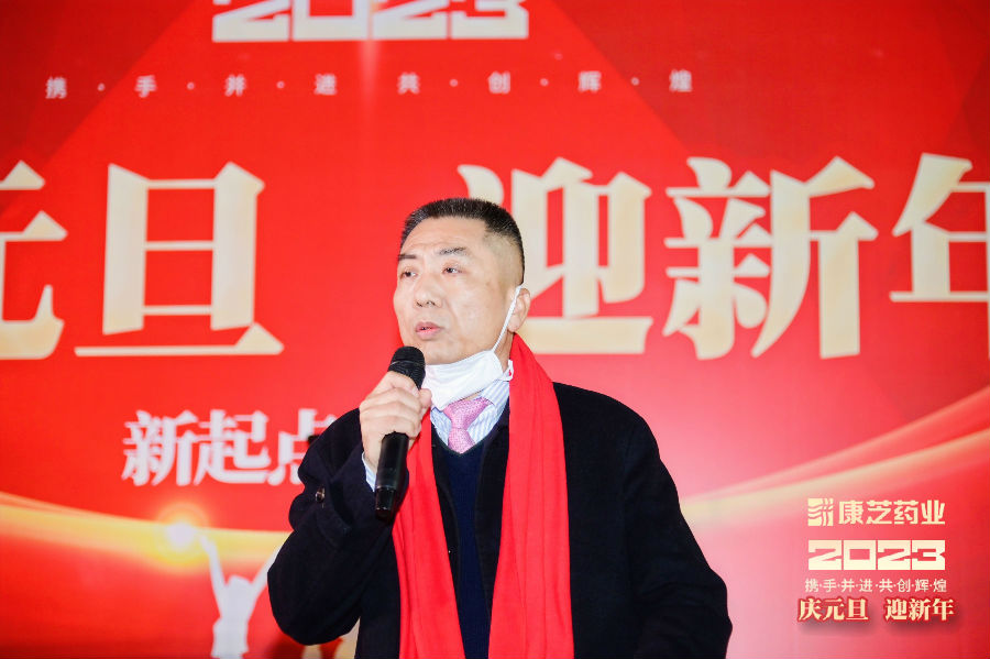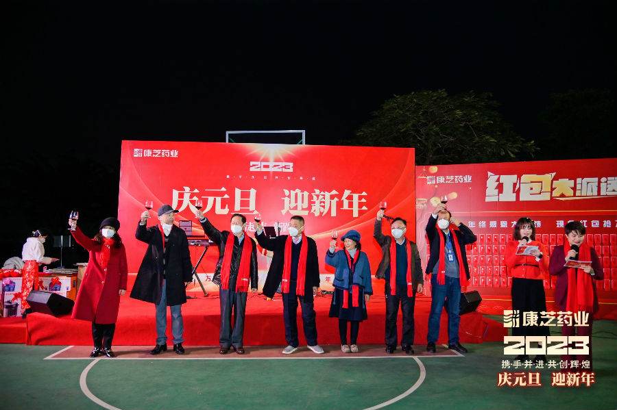 洪江游董事長代表康芝藥業向全體康芝人送去了新年祝福,同時表示自疫情開放之后,各類防疫藥品的社會需求量激增,相關藥物的儲備緊張,康芝藥業受到海南省政府領導及海口市政府領導高度關注并親臨康芝園區調研指導。作為上市藥企,康芝藥業將責無旁貸地擔起企業社會責任,保質保量地安全生產防疫物資及藥品。這個任務光榮、艱巨且偉大!隨后,董事長洪江游帶著領導班子上臺祝酒,由衷地感謝為了滿足防疫藥品生產需求,心甘情愿留守園區,加入全閉環生產環境,開足馬力、加班加點、全力保障防疫物資穩定供應的康芝員工們,相信在大家的共同努力下,2023 年康芝藥業將會再攀高峰,迎來更好的發展,未來會更加精彩且輝煌!