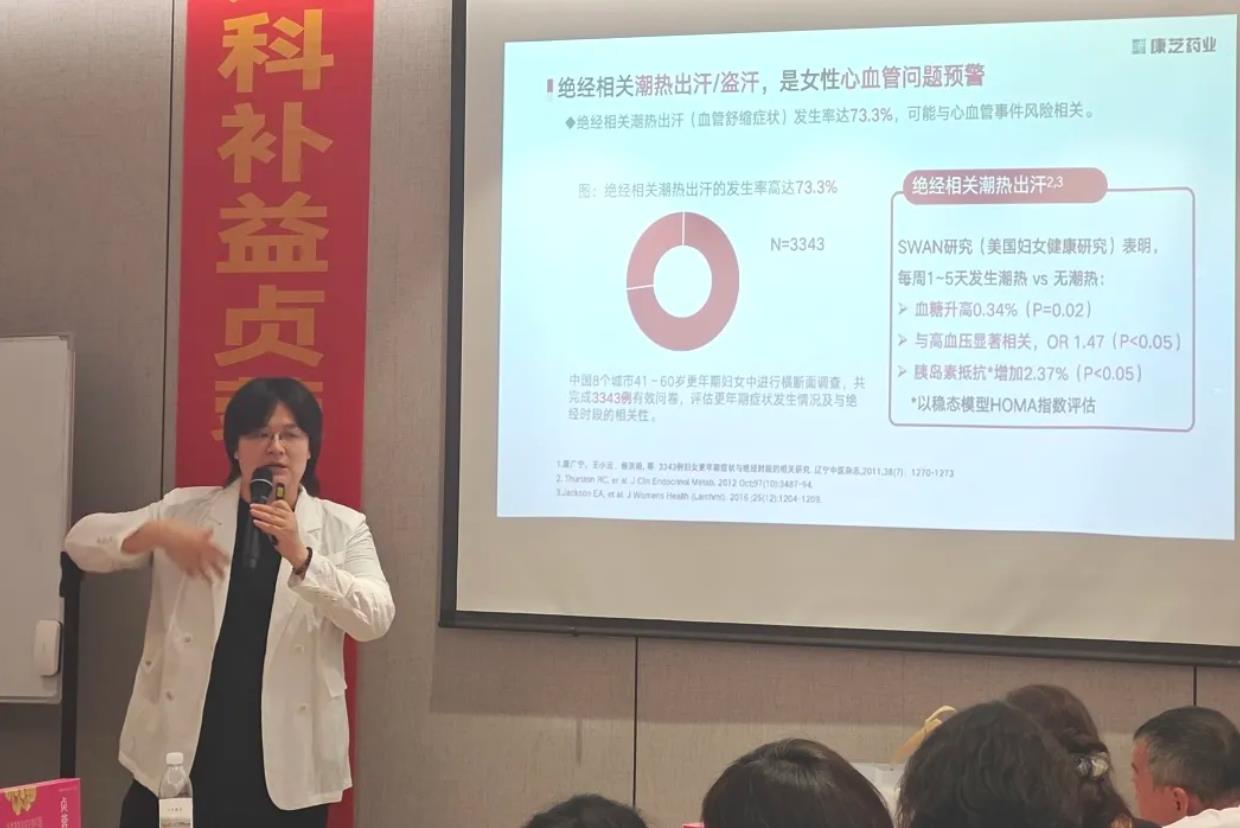 活動伊始,康芝藥業中央市場部高級產品經理陳月首先帶來《肝腎同補氣血同調 女性健康重調理》主題報告。報告以女性內分泌問題及診療現狀切入,對比中西醫理論、療法和臨床案例,深入講解肝腎在女性氣血調理、健康管理中的關鍵作用,同時分享了康芝藥業明星產品坤柔®貞蓉丹合劑在肝腎同補、調理女性常見問題中的應用要點。報告從組方原理到臨床辨證施藥層層剖析,使與會基層醫藥衛生工作者對中醫藥在女性健康調理的科學應用有了更深刻的認知。
