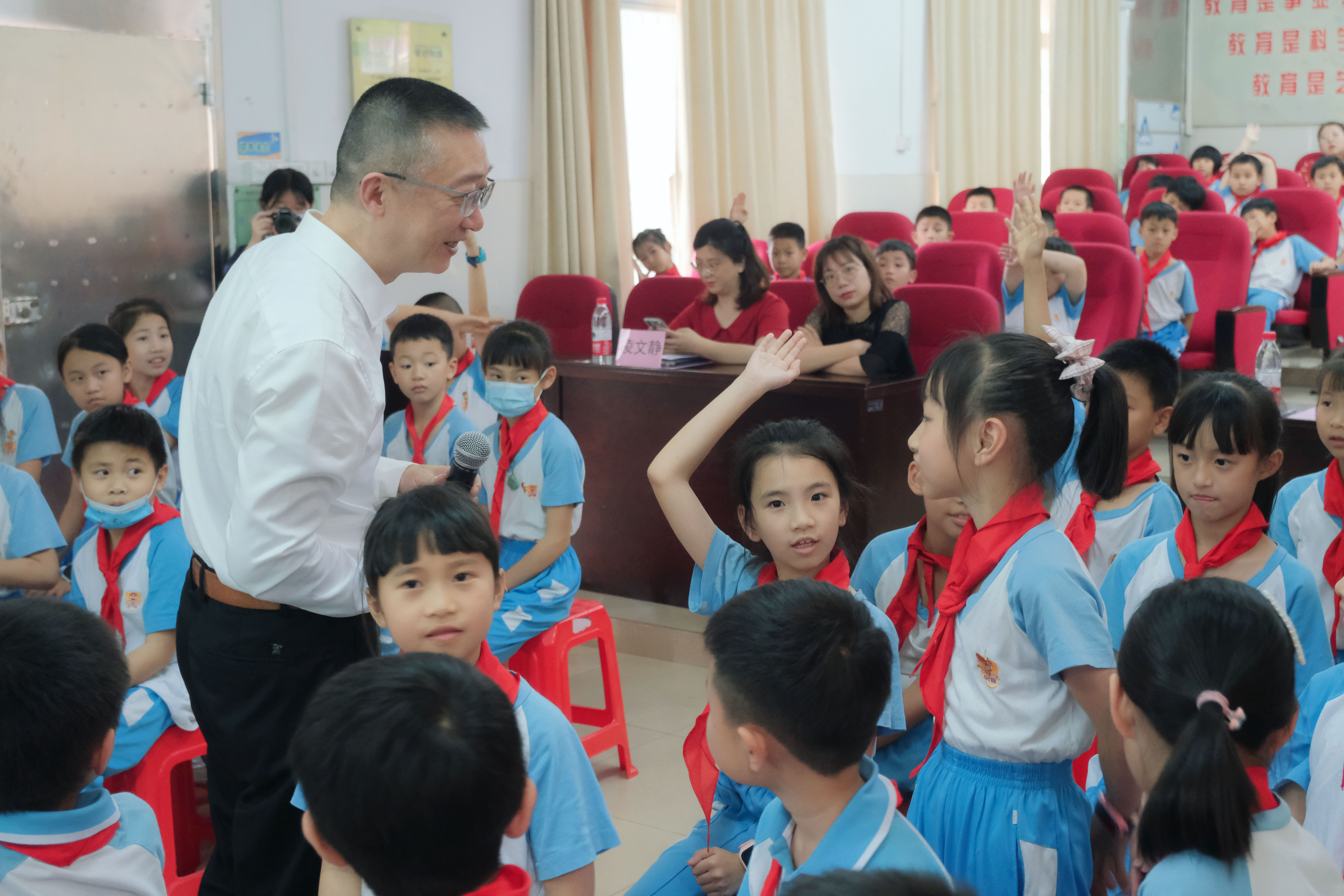 康芝藥業“防疫健康知識進課堂”系列公益活動的現場向高塘石小學捐贈了成人一次性醫用口罩10萬個,兒童口罩5000個。